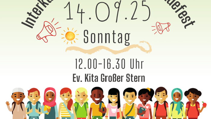Die Kita Großer Stern und die Emmaus-Kirchengemeinde feiert ein interkulturelles Kita- und Gemeindefest. Mit Andacht, Musik, Tanz, Kinder-Flohmarkt, kreativen Aktionen, Leckereien aus aller Welt und einem Kinderflohmarkt.