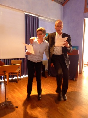 Als schließlich alle satt und zufrieden waren, kam weitere Gemeindegruppen, die den beiden Pfarrern in Lied, Rede und Aktion ihren Dank und besten Wünsche ausdrückten. Aufgelockert wurden diese Beiträge durch ein immer wiederkehrendes Lied, das passend zum Anlass als ein Dankeslied an Pastorin Hülsmeier umgetextet worden war.