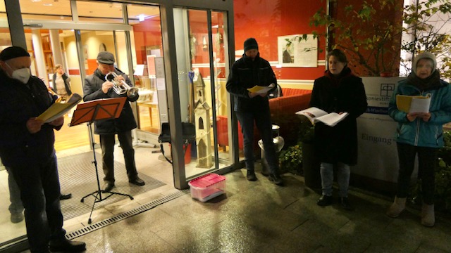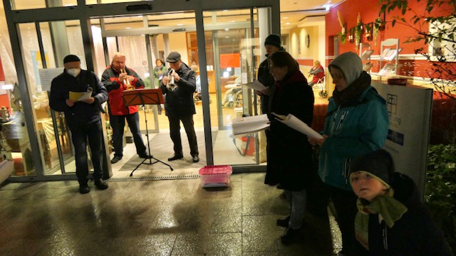 Der „Lebendige Advent“ konnte übrigens stattfinden, obwohl Corona auch dort manches veränderte. Wir waren draußen – manchmal nieselte es oder war kalt. Aber das tat der Stimmung keinen Abbruch. Ob am Nordstern, wo gemeinsam fröhlich im kleinen Kreis gesungen und Punsch getrunken wurde, oder in einer größeren Runde an der Christuskirche, wo zwar das Konzert der Musikschule nicht stattfand, aber spontan ein Bläserensemble des Ravensberger Gymnasiums einsprang und mit der Musik adventliche Gefühle aufkommen ließ bei allen, die sich einladen ließen. Einzelne Bläser der Christuskirche spielten an manchen Orten auf, in Schwarzenmoor überzeugte eine große Gruppe des Posaunenchores mehrfach. In der Ottelau sangen Menschen zum Akkordeon von Herrn Drescher und eine große Gruppe vom Blasorchester der Feuerwehr erfreute in der ersten Adventswoche die Zuhörerinnen und Zuhörer rund um „Hummelweg“, „An der Allee“ und „Eimterstraße“. Punsch und Getränke wurden aus Fenstern gereicht. Und wenn einmal ein Totalausfall drohte, weil plötzlich Mitwirkende krank geworden waren oder Auftrittsverbot bekamen, fanden sich entweder andere, die spontan in die Bresche sprangen, oder beherzt entstand ein „Spontan-Chor“, wie am Marie-Schmalenbach-Haus, wo man rund um das Haus fröhliche aus vollen Kehlen fröhlich Weihnachtslieder zu Gehör gebracht wurden – von drinnen mitgesungen und beklatscht. Insgesamt konnte sich Schritt für Schritt in den Advent mitnehmen lassen, wer sein Herz öffnete – für das, was gelang - und die liebevollen Versuche, auch das zu retten, das wegen der Einschränkungen vielleicht drohte zu misslingen. Es fanden sich Lösungen! Danke !!!