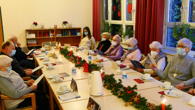 Am 4.12. fiel die Seniorenadventsfeier nicht aus, sondern fand statt - bei reduzierter Zahl, da das Virus einige zu Recht besonders vorsichtig sein lässt – aber mit leckerem Kuchen, fröhlichen und besinnlichen Geschichten und schöner Musik. Dariia Lytvischko spielte auf dem Flügel zarte Weisen und am Ende gaben Bläser der Christuskirche von draußen ein „Fensterkonzert“ für die lauschende zufriedene Gemeinschaft.