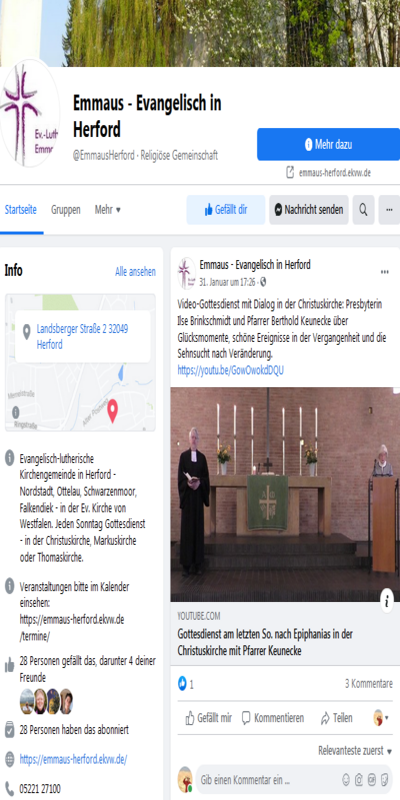 Neu hatten wir dafür eine Facebook-Seite eingerichtet, die wir jetzt weiter nutzen wollen- „Emmaus-Evangelisch in Herford“.
