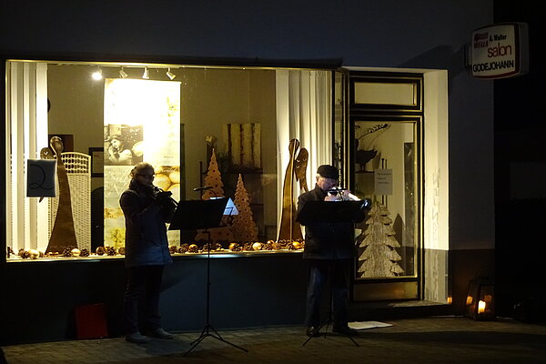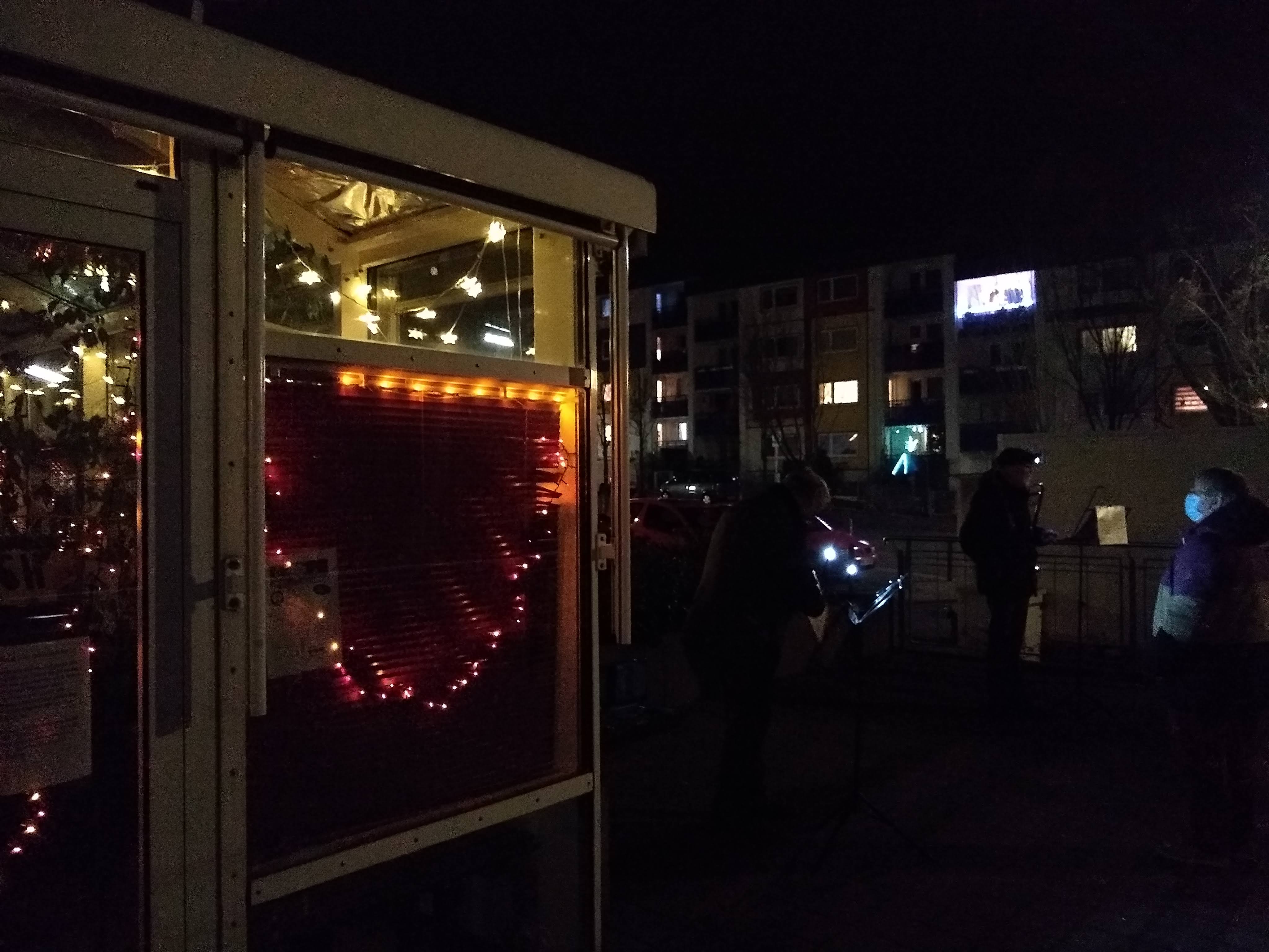 Wir hatten vorausgedacht und nachgefragt. Institutionen und Einzelpersonen hatten sich bereit erklärt, Adventsfenster zu gestalten und eine Reihe von Musizierenden, andere Menschen mit Musik zu erfreuen. Montags bis freitags gelang es so, auf unserem großen Gemeindegebiet - vor Altenheimen, Kitas, dem Klinikum und Wohnhäusern - adventliche Stimmung zu zaubern.