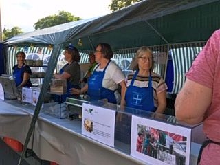 Gemeindeglieder arbeiteten dann mit am Stand der „Frauenarbeit“, an dem Pfarrerin Schnarre eine bunte Truppe aus Frauenhilfsfrauen des Bezirksvorstandes, des Frauenausschusses, ihrer ehemaligen Gemeinde Kirchlengern und eben unserer Emmaus-Gemeinde um sich versammelt hatte. Bratkartoffeln und Spiegeleier wurden dort hergestellt und verkauft. Der Erlös sollte dem diesjährigen Projekt der Frauenarbeit zugute kommen: „Brunnen für Arghanistan“.