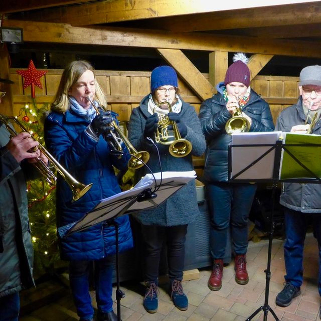 Natürlich hatten viele Menschen es „gemütlich“ gemacht mit Sitzgelegenheiten, Decken und bereits lodernden Feuern, die schon verheißungsvoll auf die im Anschluss gemeinsam genossenen Bratwürstchen und Punschgetränke hinwiesen. Gleichzeitig war aber auch die Kälte des Tages zu spüren, auch wenn sich viele mit winterfester Kleidung und wetterfesten Schuhen dagegen so gut wie möglich gewappnet hatten. Aber dass bei einer Predigt der Atem kleine Wölkchen vor die Lippen der Pastorin weht und die vereinigten Bläser der Thomas- und Christuskirche teilweise mit Handschuhen ihren Dienst versehen, ist eben doch ungewöhnlich.