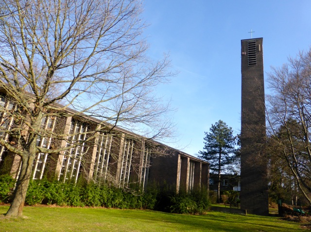 Bis 1972 entstanden neben der Kirche ein Jugend- und Gemeindehaus, zwei Pfarrhäuser und ein Kindergarten. Die Gemeinderäume, die bis heute eine architektonische Einheit mit der Kirche bildet, wurden 1993 erheblich erweitert. Der freistehende Turm auf der Südseite der Kirche hat eine Höhe von 35 Metern.